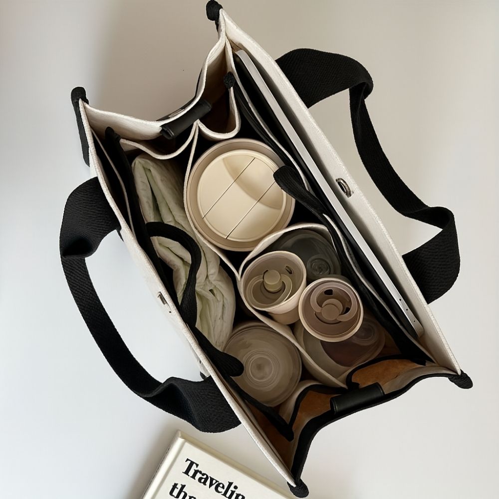 Designed for simplicity and function, this baby changing tote bag makes every outing smoother. It keeps bottles, wipes, and essentials neatly upright and within reach while maintaining a sleek, minimalist aesthetic. Compact yet surprisingly roomy, it’s ideal for parents who appreciate style, practicality, and ease in one beautiful everyday bag.